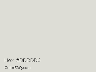 Hex #ddddd6 Color is a very light yellow color and the nearest color is Alto #dbdbdb. Hex code #ddddd6 and RGB value is rgb(221,221,214). In RGB color space, this color is composed of 87% red, 87% green, 84% blue, In CMYK color space, this color is composed of 0% cyan, 0% magenta, 3% yellow , 13% black , In HSL color space, this color has a hue angle of 60° , 9% saturation and 85% lightness.