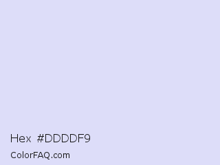 Hex #ddddf9 Color is a very light blue color and the nearest color is Link Water #d9e4f5. Hex code #ddddf9 and RGB value is rgb(221,221,249). In RGB color space, this color is composed of 87% red, 87% green, 98% blue, In CMYK color space, this color is composed of 11% cyan, 11% magenta, 0% yellow , 2% black , In HSL color space, this color has a hue angle of 240° , 70% saturation and 92% lightness.