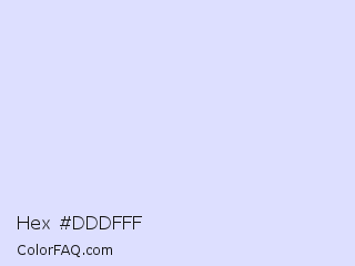 Hex #dddfff Color is a very light blue color and the nearest color is Hawkes Blue #d4e2fc. Hex code #dddfff and RGB value is rgb(221,223,255). In RGB color space, this color is composed of 87% red, 87% green, 100% blue, In CMYK color space, this color is composed of 13% cyan, 13% magenta, 0% yellow , 0% black , In HSL color space, this color has a hue angle of 236° , 100% saturation and 93% lightness.