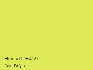 Hex #ddea59 Color is a light yellow color and the nearest color is Maximum Green Yellow #d9e650. Hex code #ddea59 and RGB value is rgb(221,234,89). In RGB color space, this color is composed of 87% red, 92% green, 35% blue, In CMYK color space, this color is composed of 6% cyan, 0% magenta, 62% yellow , 8% black , In HSL color space, this color has a hue angle of 65° , 78% saturation and 63% lightness.
