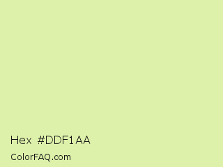 Hex #ddf1aa Color is a very light lime color and the nearest color is Caper #dcedb4. Hex code #ddf1aa and RGB value is rgb(221,241,170). In RGB color space, this color is composed of 87% red, 95% green, 67% blue, In CMYK color space, this color is composed of 8% cyan, 0% magenta, 29% yellow , 5% black , In HSL color space, this color has a hue angle of 77° , 72% saturation and 81% lightness.