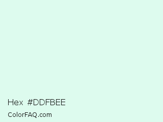 Hex #ddfbee Color is a very light green color and the nearest color is White Ice #ddf9f1. Hex code #ddfbee and RGB value is rgb(221,251,238). In RGB color space, this color is composed of 87% red, 98% green, 93% blue, In CMYK color space, this color is composed of 12% cyan, 0% magenta, 5% yellow , 2% black , In HSL color space, this color has a hue angle of 154° , 79% saturation and 93% lightness.