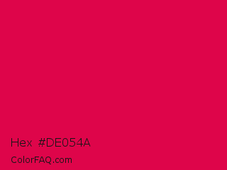 Hex #de054a Color is a normal rose color and the nearest color is UA Red #d9004c. Hex code #de054a and RGB value is rgb(222,5,74). In RGB color space, this color is composed of 87% red, 2% green, 29% blue, In CMYK color space, this color is composed of 0% cyan, 98% magenta, 67% yellow , 13% black , In HSL color space, this color has a hue angle of 341° , 96% saturation and 45% lightness.
