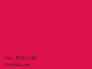 Hex #de114e Color is a normal rose color and the nearest color is Debian Red #d70a53. Hex code #de114e and RGB value is rgb(222,17,78). In RGB color space, this color is composed of 87% red, 7% green, 31% blue, In CMYK color space, this color is composed of 0% cyan, 92% magenta, 65% yellow , 13% black , In HSL color space, this color has a hue angle of 342° , 86% saturation and 47% lightness.