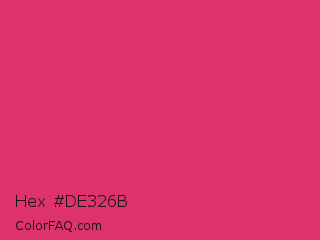 Hex #de326b Color is a normal rose color and the nearest color is Cerise Red #de3163. Hex code #de326b and RGB value is rgb(222,50,107). In RGB color space, this color is composed of 87% red, 20% green, 42% blue, In CMYK color space, this color is composed of 0% cyan, 77% magenta, 52% yellow , 13% black , In HSL color space, this color has a hue angle of 340° , 72% saturation and 53% lightness.