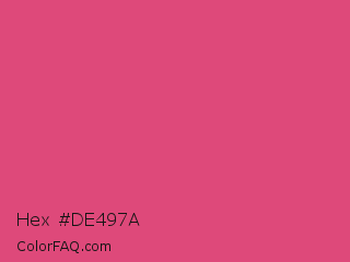 Hex #de497a Color is a normal rose color and the nearest color is Cranberry #db5079. Hex code #de497a and RGB value is rgb(222,73,122). In RGB color space, this color is composed of 87% red, 29% green, 48% blue, In CMYK color space, this color is composed of 0% cyan, 67% magenta, 45% yellow , 13% black , In HSL color space, this color has a hue angle of 340° , 69% saturation and 58% lightness.