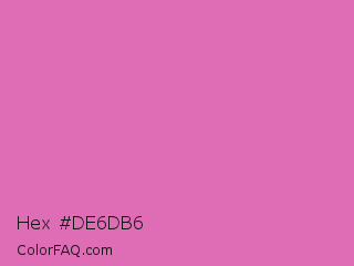 Hex #de6db6 Color is a light magenta color and the nearest color is Sky Magenta #cf71af. Hex code #de6db6 and RGB value is rgb(222,109,182). In RGB color space, this color is composed of 87% red, 43% green, 71% blue, In CMYK color space, this color is composed of 0% cyan, 51% magenta, 18% yellow , 13% black , In HSL color space, this color has a hue angle of 321° , 63% saturation and 65% lightness.