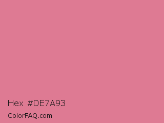 Hex #de7a93 Color is a light red color and the nearest color is Bright Blush #e47698. Hex code #de7a93 and RGB value is rgb(222,122,147). In RGB color space, this color is composed of 87% red, 48% green, 58% blue, In CMYK color space, this color is composed of 0% cyan, 45% magenta, 34% yellow , 13% black , In HSL color space, this color has a hue angle of 345° , 60% saturation and 67% lightness.