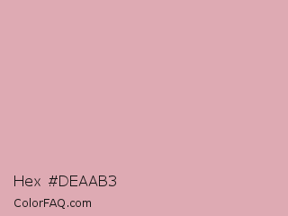 Hex #deaab3 Color is a light red color and the nearest color is Pale Chestnut #ddadaf. Hex code #deaab3 and RGB value is rgb(222,170,179). In RGB color space, this color is composed of 87% red, 67% green, 70% blue, In CMYK color space, this color is composed of 0% cyan, 23% magenta, 19% yellow , 13% black , In HSL color space, this color has a hue angle of 350° , 44% saturation and 77% lightness.