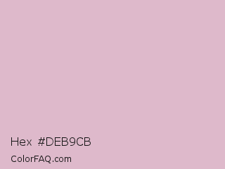 Hex #deb9cb Color is a light rose color and the nearest color is Pink Flare #e1c0c8. Hex code #deb9cb and RGB value is rgb(222,185,203). In RGB color space, this color is composed of 87% red, 73% green, 80% blue, In CMYK color space, this color is composed of 0% cyan, 17% magenta, 9% yellow , 13% black , In HSL color space, this color has a hue angle of 331° , 36% saturation and 80% lightness.