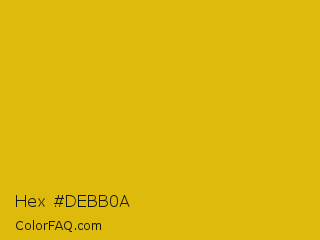Hex #debb0a Color is a normal yellow color and the nearest color is Gold Tips #deba13. Hex code #debb0a and RGB value is rgb(222,187,10). In RGB color space, this color is composed of 87% red, 73% green, 4% blue, In CMYK color space, this color is composed of 0% cyan, 16% magenta, 95% yellow , 13% black , In HSL color space, this color has a hue angle of 50° , 91% saturation and 45% lightness.