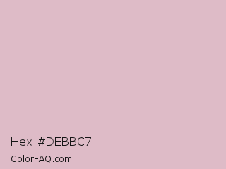 Hex #debbc7 Color is a light rose color and the nearest color is Pink Flare #e1c0c8. Hex code #debbc7 and RGB value is rgb(222,187,199). In RGB color space, this color is composed of 87% red, 73% green, 78% blue, In CMYK color space, this color is composed of 0% cyan, 16% magenta, 10% yellow , 13% black , In HSL color space, this color has a hue angle of 339° , 35% saturation and 80% lightness.