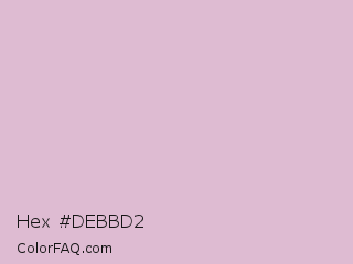 Hex #debbd2 Color is a light magenta color and the nearest color is Thistle #d8bfd8. Hex code #debbd2 and RGB value is rgb(222,187,210). In RGB color space, this color is composed of 87% red, 73% green, 82% blue, In CMYK color space, this color is composed of 0% cyan, 16% magenta, 5% yellow , 13% black , In HSL color space, this color has a hue angle of 321° , 35% saturation and 80% lightness.
