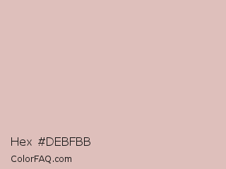 Hex #debfbb Color is a light red color and the nearest color is Cavern Pink #e3bebe. Hex code #debfbb and RGB value is rgb(222,191,187). In RGB color space, this color is composed of 87% red, 75% green, 73% blue, In CMYK color space, this color is composed of 0% cyan, 14% magenta, 16% yellow , 13% black , In HSL color space, this color has a hue angle of 7° , 35% saturation and 80% lightness.