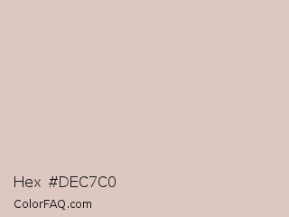 Hex #dec7c0 Color is a very light red color and the nearest color is Wafer #decbc6. Hex code #dec7c0 and RGB value is rgb(222,199,192). In RGB color space, this color is composed of 87% red, 78% green, 75% blue, In CMYK color space, this color is composed of 0% cyan, 10% magenta, 14% yellow , 13% black , In HSL color space, this color has a hue angle of 14° , 31% saturation and 81% lightness.