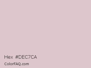 Hex #dec7ca Color is a very light red color and the nearest color is Wafer #decbc6. Hex code #dec7ca and RGB value is rgb(222,199,202). In RGB color space, this color is composed of 87% red, 78% green, 79% blue, In CMYK color space, this color is composed of 0% cyan, 10% magenta, 9% yellow , 13% black , In HSL color space, this color has a hue angle of 352° , 26% saturation and 83% lightness.