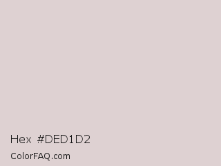 Hex #ded1d2 Color is a very light red color and the nearest color is Swiss Coffee #ddd6d5. Hex code #ded1d2 and RGB value is rgb(222,209,210). In RGB color space, this color is composed of 87% red, 82% green, 82% blue, In CMYK color space, this color is composed of 0% cyan, 6% magenta, 5% yellow , 13% black , In HSL color space, this color has a hue angle of 355° , 16% saturation and 85% lightness.