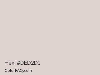 Hex #ded2d1 Color is a very light red color and the nearest color is Swiss Coffee #ddd6d5. Hex code #ded2d1 and RGB value is rgb(222,210,209). In RGB color space, this color is composed of 87% red, 82% green, 82% blue, In CMYK color space, this color is composed of 0% cyan, 5% magenta, 6% yellow , 13% black , In HSL color space, this color has a hue angle of 5° , 16% saturation and 85% lightness.