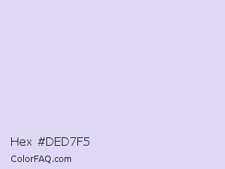 Hex #ded7f5 Color is a very light indigo color and the nearest color is Snuff #e2d8ed. Hex code #ded7f5 and RGB value is rgb(222,215,245). In RGB color space, this color is composed of 87% red, 84% green, 96% blue, In CMYK color space, this color is composed of 9% cyan, 12% magenta, 0% yellow , 4% black , In HSL color space, this color has a hue angle of 254° , 60% saturation and 90% lightness.