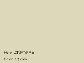 Hex #ded8ba Color is a light yellow color and the nearest color is Grain Brown #e4d5b7. Hex code #ded8ba and RGB value is rgb(222,216,186). In RGB color space, this color is composed of 87% red, 85% green, 73% blue, In CMYK color space, this color is composed of 0% cyan, 3% magenta, 16% yellow , 13% black , In HSL color space, this color has a hue angle of 50° , 35% saturation and 80% lightness.