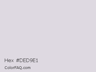Hex #ded9e1 Color is a very light purple color and the nearest color is Gainsboro #dcdcdc. Hex code #ded9e1 and RGB value is rgb(222,217,225). In RGB color space, this color is composed of 87% red, 85% green, 88% blue, In CMYK color space, this color is composed of 1% cyan, 4% magenta, 0% yellow , 12% black , In HSL color space, this color has a hue angle of 278° , 12% saturation and 87% lightness.