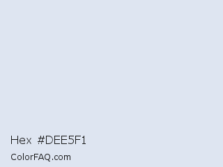 Hex #dee5f1 Color is a very light blue color and the nearest color is Azureish White #dbe9f4. Hex code #dee5f1 and RGB value is rgb(222,229,241). In RGB color space, this color is composed of 87% red, 90% green, 95% blue, In CMYK color space, this color is composed of 8% cyan, 5% magenta, 0% yellow , 5% black , In HSL color space, this color has a hue angle of 218° , 40% saturation and 91% lightness.