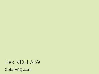 Hex #deeab9 Color is a very light lime color and the nearest color is Caper #dcedb4. Hex code #deeab9 and RGB value is rgb(222,234,185). In RGB color space, this color is composed of 87% red, 92% green, 73% blue, In CMYK color space, this color is composed of 5% cyan, 0% magenta, 21% yellow , 8% black , In HSL color space, this color has a hue angle of 75° , 54% saturation and 82% lightness.