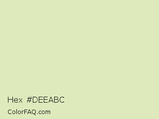 Hex #deeabc Color is a very light lime color and the nearest color is Beryl Green #dee5c0. Hex code #deeabc and RGB value is rgb(222,234,188). In RGB color space, this color is composed of 87% red, 92% green, 74% blue, In CMYK color space, this color is composed of 5% cyan, 0% magenta, 20% yellow , 8% black , In HSL color space, this color has a hue angle of 76° , 52% saturation and 83% lightness.