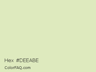 Hex #deeabe Color is a very light lime color and the nearest color is Beryl Green #dee5c0. Hex code #deeabe and RGB value is rgb(222,234,190). In RGB color space, this color is composed of 87% red, 92% green, 75% blue, In CMYK color space, this color is composed of 5% cyan, 0% magenta, 19% yellow , 8% black , In HSL color space, this color has a hue angle of 76° , 51% saturation and 83% lightness.