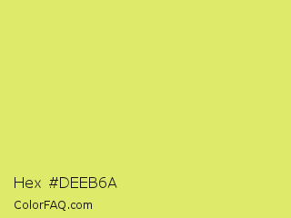Hex #deeb6a Color is a light yellow color and the nearest color is Booger Buster #dde26a. Hex code #deeb6a and RGB value is rgb(222,235,106). In RGB color space, this color is composed of 87% red, 92% green, 42% blue, In CMYK color space, this color is composed of 6% cyan, 0% magenta, 55% yellow , 8% black , In HSL color space, this color has a hue angle of 66° , 76% saturation and 67% lightness.