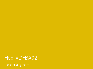 Hex #dfba02 Color is a normal yellow color and the nearest color is Corn #e7bf05. Hex code #dfba02 and RGB value is rgb(223,186,2). In RGB color space, this color is composed of 87% red, 73% green, 1% blue, In CMYK color space, this color is composed of 0% cyan, 17% magenta, 99% yellow , 13% black , In HSL color space, this color has a hue angle of 50° , 98% saturation and 44% lightness.