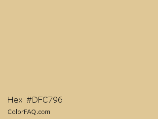 Hex #dfc796 Color is a light orange color and the nearest color is Brandy #dec196. Hex code #dfc796 and RGB value is rgb(223,199,150). In RGB color space, this color is composed of 87% red, 78% green, 59% blue, In CMYK color space, this color is composed of 0% cyan, 11% magenta, 33% yellow , 13% black , In HSL color space, this color has a hue angle of 40° , 53% saturation and 73% lightness.