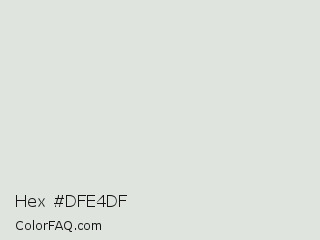 Hex #dfe4df Color is a very light green color and the nearest color is Platinum #e5e4e2. Hex code #dfe4df and RGB value is rgb(223,228,223). In RGB color space, this color is composed of 87% red, 89% green, 87% blue, In CMYK color space, this color is composed of 2% cyan, 0% magenta, 2% yellow , 11% black , In HSL color space, this color has a hue angle of 120° , 8% saturation and 88% lightness.