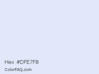 Hex #dfe7f8 Color is a very light blue color and the nearest color is Azureish White #dbe9f4. Hex code #dfe7f8 and RGB value is rgb(223,231,248). In RGB color space, this color is composed of 87% red, 91% green, 97% blue, In CMYK color space, this color is composed of 10% cyan, 7% magenta, 0% yellow , 3% black , In HSL color space, this color has a hue angle of 221° , 64% saturation and 92% lightness.