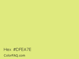 Hex #dfea7e Color is a light yellow color and the nearest color is Manz #eeef78. Hex code #dfea7e and RGB value is rgb(223,234,126). In RGB color space, this color is composed of 87% red, 92% green, 49% blue, In CMYK color space, this color is composed of 5% cyan, 0% magenta, 46% yellow , 8% black , In HSL color space, this color has a hue angle of 66° , 72% saturation and 71% lightness.