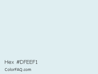 Hex #dfeef1 Color is a very light cyan color and the nearest color is Mystic #e2ebed. Hex code #dfeef1 and RGB value is rgb(223,238,241). In RGB color space, this color is composed of 87% red, 93% green, 95% blue, In CMYK color space, this color is composed of 7% cyan, 1% magenta, 0% yellow , 5% black , In HSL color space, this color has a hue angle of 190° , 39% saturation and 91% lightness.