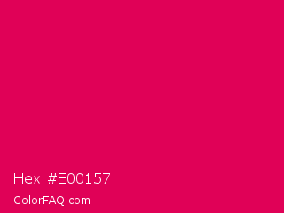 Hex #e00157 Color is a normal rose color and the nearest color is Razzmatazz Crayola #e30b5c. Hex code #e00157 and RGB value is rgb(224,1,87). In RGB color space, this color is composed of 88% red, 0% green, 34% blue, In CMYK color space, this color is composed of 0% cyan, 100% magenta, 61% yellow , 12% black , In HSL color space, this color has a hue angle of 337° , 99% saturation and 44% lightness.