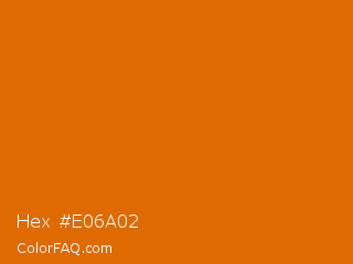 Hex #e06a02 Color is a normal orange color and the nearest color is Bamboo #da6304. Hex code #e06a02 and RGB value is rgb(224,106,2). In RGB color space, this color is composed of 88% red, 42% green, 1% blue, In CMYK color space, this color is composed of 0% cyan, 53% magenta, 99% yellow , 12% black , In HSL color space, this color has a hue angle of 28° , 98% saturation and 44% lightness.