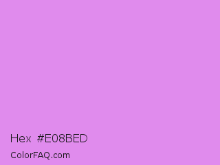 Hex #e08bed Color is a light magenta color and the nearest color is Bright Lilac #d891ef. Hex code #e08bed and RGB value is rgb(224,139,237). In RGB color space, this color is composed of 88% red, 55% green, 93% blue, In CMYK color space, this color is composed of 5% cyan, 41% magenta, 0% yellow , 7% black , In HSL color space, this color has a hue angle of 292° , 73% saturation and 74% lightness.