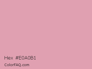 Hex #e0a0b1 Color is a light rose color and the nearest color is Pale Chestnut #ddadaf. Hex code #e0a0b1 and RGB value is rgb(224,160,177). In RGB color space, this color is composed of 88% red, 63% green, 69% blue, In CMYK color space, this color is composed of 0% cyan, 29% magenta, 21% yellow , 12% black , In HSL color space, this color has a hue angle of 344° , 51% saturation and 75% lightness.