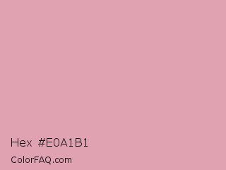 Hex #e0a1b1 Color is a light red color and the nearest color is Pale Chestnut #ddadaf. Hex code #e0a1b1 and RGB value is rgb(224,161,177). In RGB color space, this color is composed of 88% red, 63% green, 69% blue, In CMYK color space, this color is composed of 0% cyan, 28% magenta, 21% yellow , 12% black , In HSL color space, this color has a hue angle of 345° , 50% saturation and 75% lightness.
