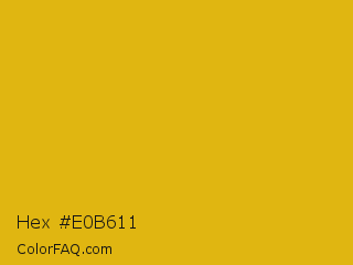 Hex #e0b611 Color is a normal yellow color and the nearest color is Gold Tips #deba13. Hex code #e0b611 and RGB value is rgb(224,182,17). In RGB color space, this color is composed of 88% red, 71% green, 7% blue, In CMYK color space, this color is composed of 0% cyan, 19% magenta, 92% yellow , 12% black , In HSL color space, this color has a hue angle of 48° , 86% saturation and 47% lightness.