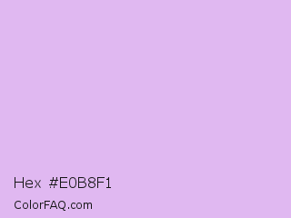 Hex #e0b8f1 Color is a very light purple color and the nearest color is Mauve #e0b0ff. Hex code #e0b8f1 and RGB value is rgb(224,184,241). In RGB color space, this color is composed of 88% red, 72% green, 95% blue, In CMYK color space, this color is composed of 7% cyan, 24% magenta, 0% yellow , 5% black , In HSL color space, this color has a hue angle of 282° , 67% saturation and 83% lightness.