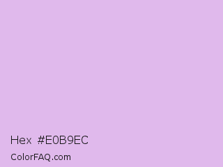 Hex #e0b9ec Color is a very light purple color and the nearest color is French Lilac #ecc7ee. Hex code #e0b9ec and RGB value is rgb(224,185,236). In RGB color space, this color is composed of 88% red, 73% green, 93% blue, In CMYK color space, this color is composed of 5% cyan, 22% magenta, 0% yellow , 7% black , In HSL color space, this color has a hue angle of 286° , 57% saturation and 83% lightness.