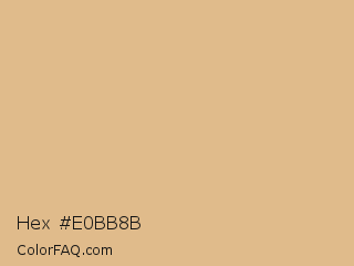 Hex #e0bb8b Color is a light orange color and the nearest color is Burlywood #deb887. Hex code #e0bb8b and RGB value is rgb(224,187,139). In RGB color space, this color is composed of 88% red, 73% green, 55% blue, In CMYK color space, this color is composed of 0% cyan, 17% magenta, 38% yellow , 12% black , In HSL color space, this color has a hue angle of 34° , 58% saturation and 71% lightness.