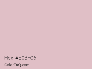 Hex #e0bfc6 Color is a very light red color and the nearest color is Pink Flare #e1c0c8. Hex code #e0bfc6 and RGB value is rgb(224,191,198). In RGB color space, this color is composed of 88% red, 75% green, 78% blue, In CMYK color space, this color is composed of 0% cyan, 15% magenta, 12% yellow , 12% black , In HSL color space, this color has a hue angle of 347° , 35% saturation and 81% lightness.