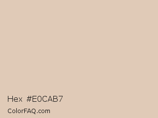 Hex #e0cab7 Color is a light orange color and the nearest color is Grain Brown #e4d5b7. Hex code #e0cab7 and RGB value is rgb(224,202,183). In RGB color space, this color is composed of 88% red, 79% green, 72% blue, In CMYK color space, this color is composed of 0% cyan, 10% magenta, 18% yellow , 12% black , In HSL color space, this color has a hue angle of 28° , 40% saturation and 80% lightness.