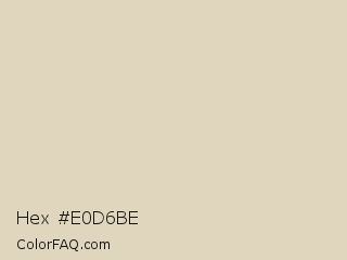 Hex #e0d6be Color is a very light orange color and the nearest color is Stark White #e5d7bd. Hex code #e0d6be and RGB value is rgb(224,214,190). In RGB color space, this color is composed of 88% red, 84% green, 75% blue, In CMYK color space, this color is composed of 0% cyan, 4% magenta, 15% yellow , 12% black , In HSL color space, this color has a hue angle of 42° , 35% saturation and 81% lightness.