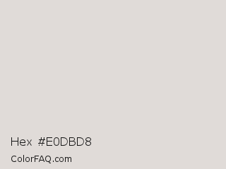 Hex #e0dbd8 Color is a very light orange color and the nearest color is Gainsboro #dcdcdc. Hex code #e0dbd8 and RGB value is rgb(224,219,216). In RGB color space, this color is composed of 88% red, 86% green, 85% blue, In CMYK color space, this color is composed of 0% cyan, 2% magenta, 4% yellow , 12% black , In HSL color space, this color has a hue angle of 22° , 11% saturation and 86% lightness.