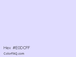 Hex #e0dcff Color is a very light indigo color and the nearest color is Pale Lavender #dcd0ff. Hex code #e0dcff and RGB value is rgb(224,220,255). In RGB color space, this color is composed of 88% red, 86% green, 100% blue, In CMYK color space, this color is composed of 12% cyan, 14% magenta, 0% yellow , 0% black , In HSL color space, this color has a hue angle of 247° , 100% saturation and 93% lightness.